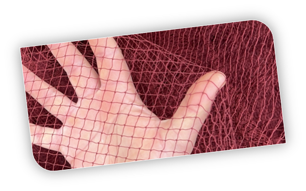 Toutes sortes de filet de pêche, toutes les mesures, filet en nylon et plastique…, selon l’utilisation.